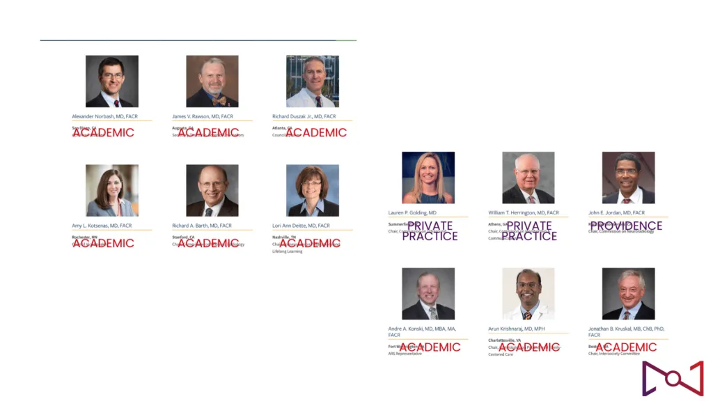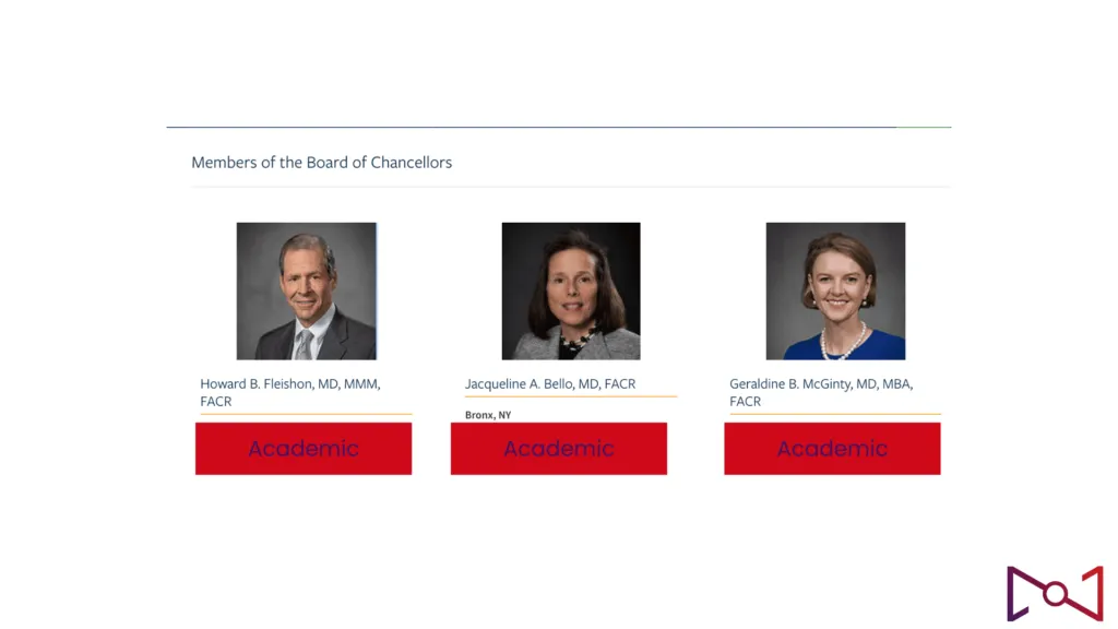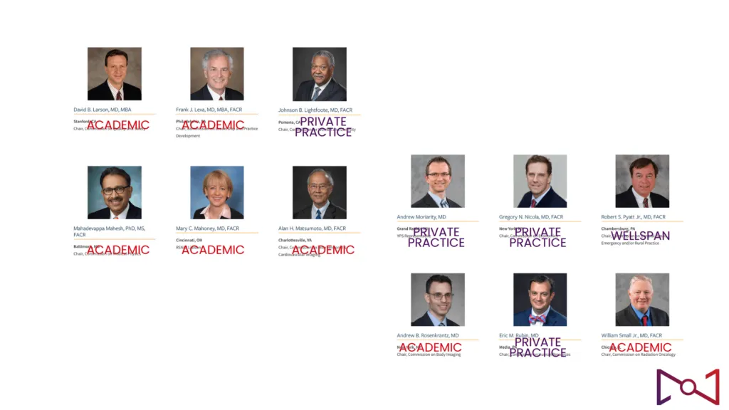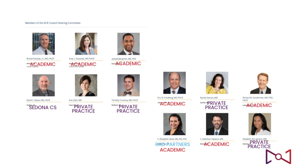 Among the 34 members of the American College of Radiology Board of Chancellors, there are 0, I repeat ZERO, radiologists that either directly or indirectly work for Radiology Partners.